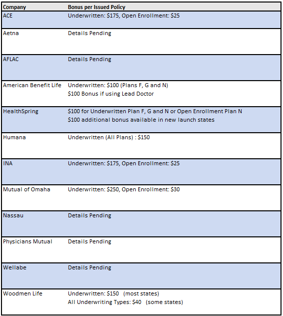 HealthSpring (formerly Cigna) has released a new program that includes a $100 bonus on Underwritten applications plus an additional bonus in new launch states