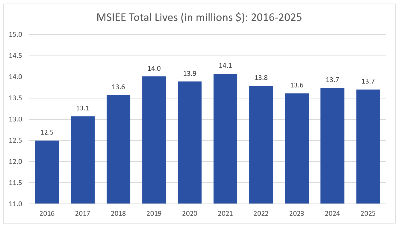 The 0.3% decrease in 2025 Medicare supplement lives unwound some of the 1.0% growth realized in 2024. However, the 13.7 million lives in 2025 are still higher than the 13.6 million reported in 2023.
